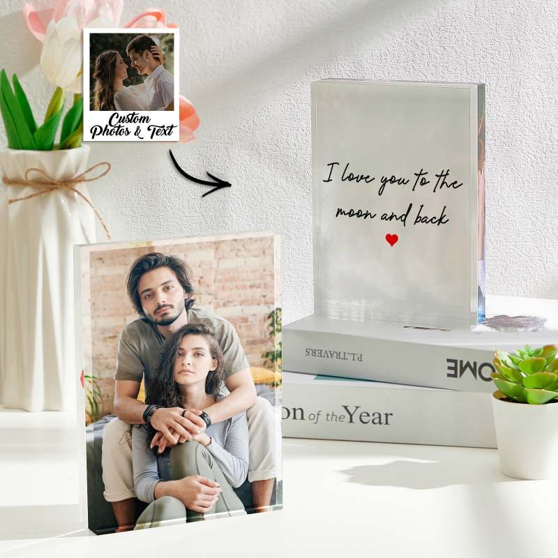 Custom Photo Acrylic Crystal Block with Personalized Text Gift for Couples Valentine's Gift