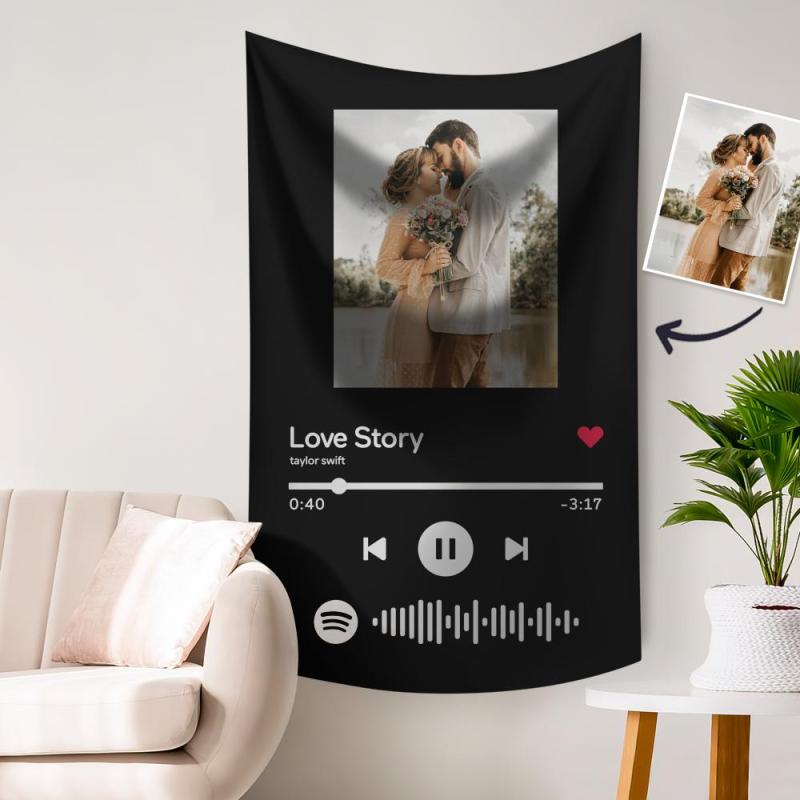Custom Photo Tapestry Spotify Music Code Tapestry Black 76.2cm*127cm/30in*50in