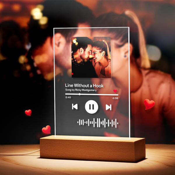 Personalized Photo Acrylic Song Plaque Custom Spotify Plaque Night Light Lamp with Spotify Code First Anniversary Gift -