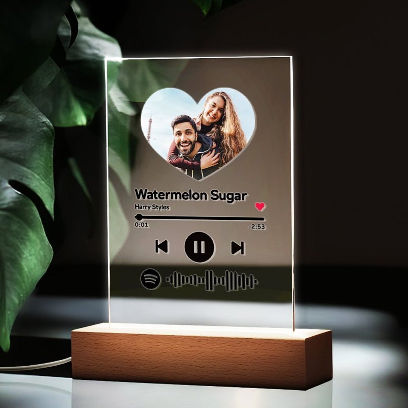 Personalized Photo Acrylic Song Plaque Custom Spotify Plaque Night Light Lamp with Spotify Code First Anniversary Gift -