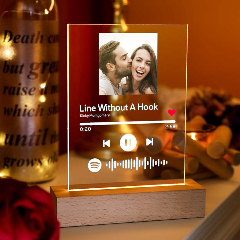 Personalized Photo Acrylic Song Plaque Custom Spotify Plaque Night Light Lamp with Spotify Code First Anniversary Gift -