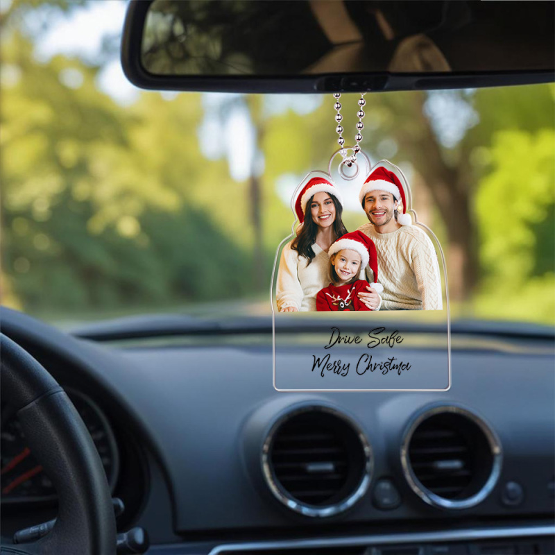 Customized Drive Safe Daddy Ornament with Family Photo, Personalized Picture Acrylic Hanger Gift for Him, Custom Gift Idea for Fathers Day