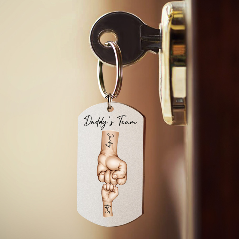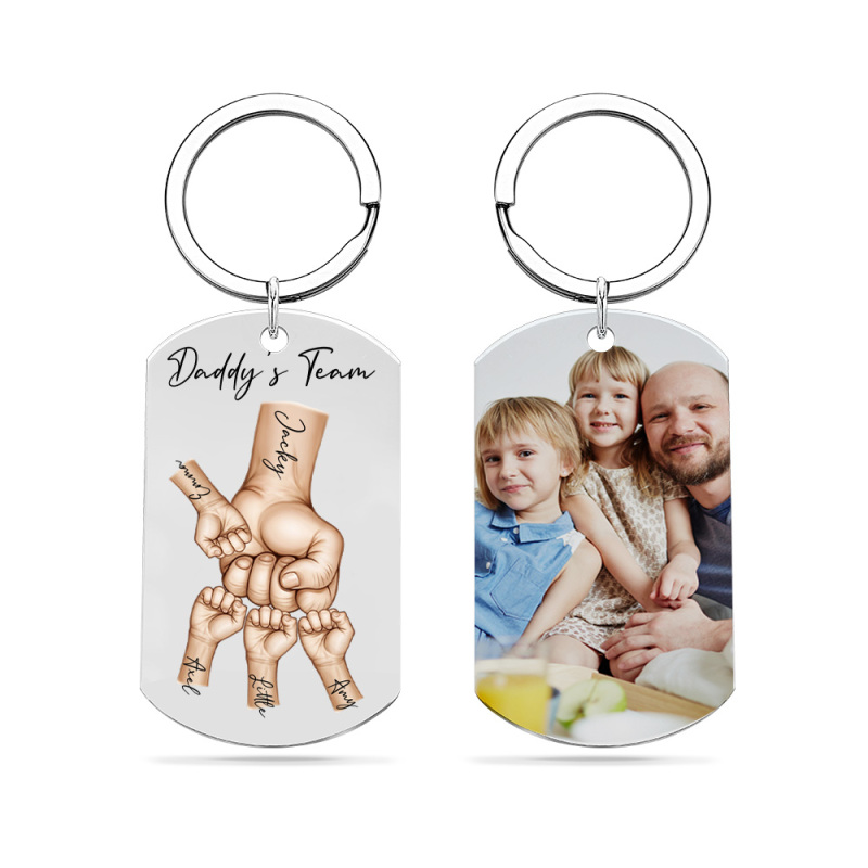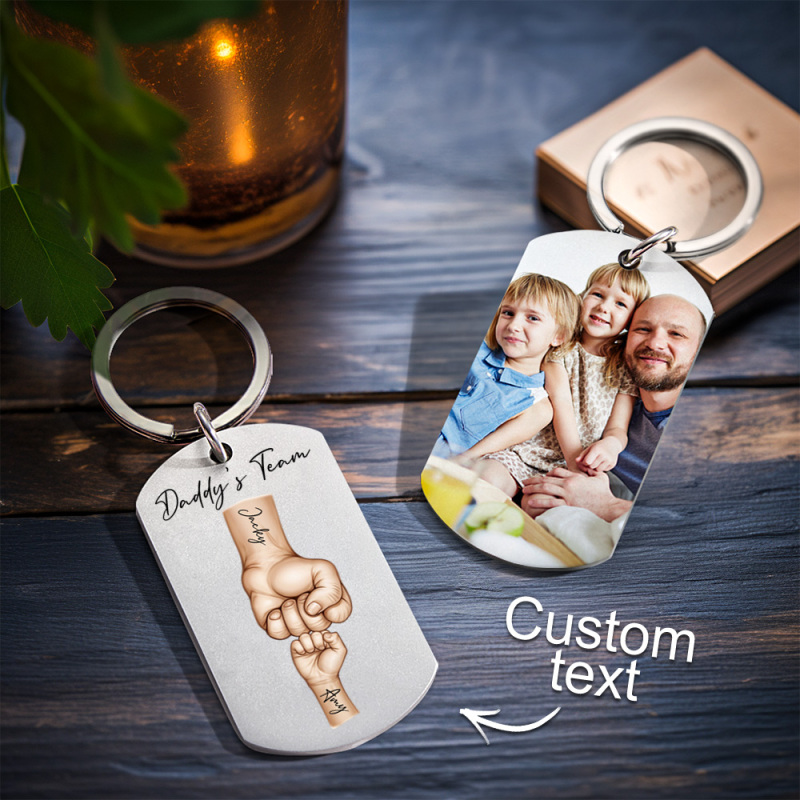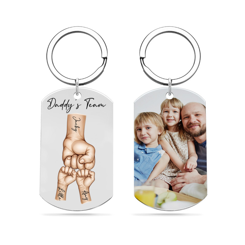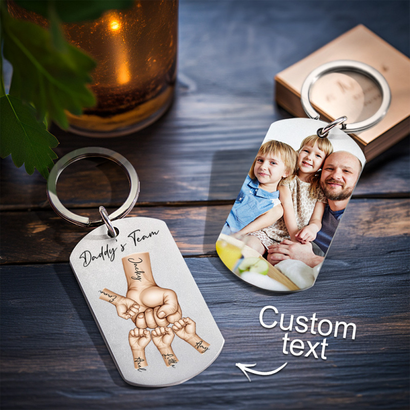 Father's Day Gifts Custom Photo Daddy's Team Fist Bump Keychain Personalized Name Keychain Gift for Dad