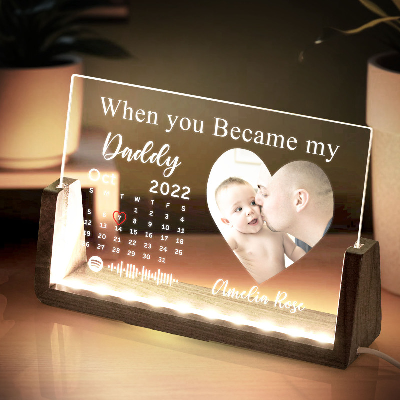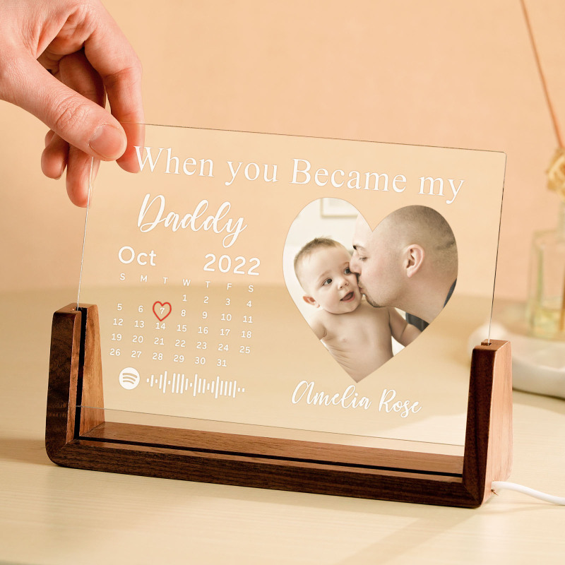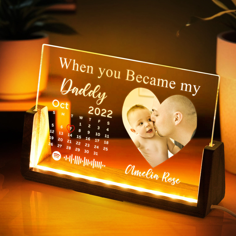 Father's Day Gifts Personalized When You Became Daddy Spotify Calendar Acrylic Night Light Photo Decor