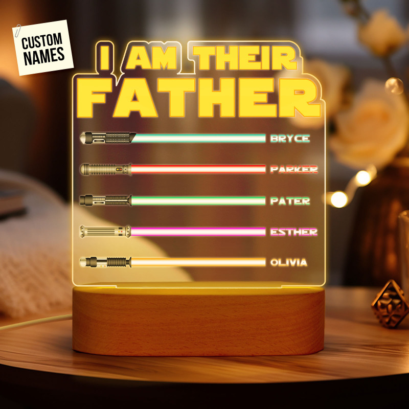 I Am Their Father Personalized Lightsaber Night Light with Kids Names Custom Gifts for Dad