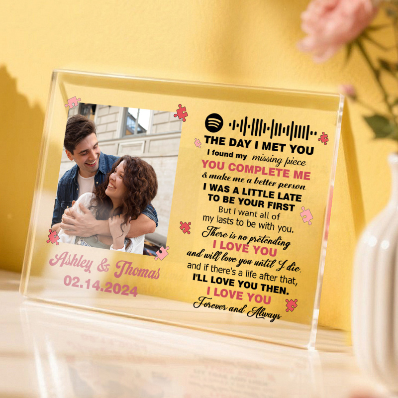 I Found My Missing Piece Personalized Photo Plaque Custom Acrylic Spotify Song Decor Anniversary Gift For Couples
