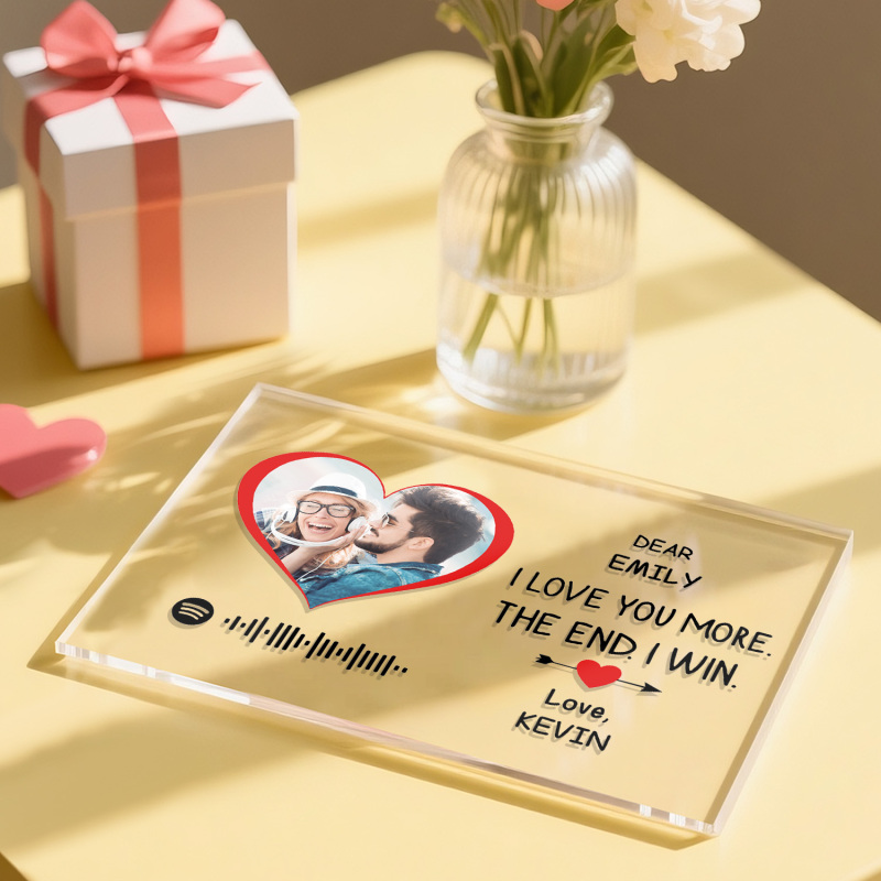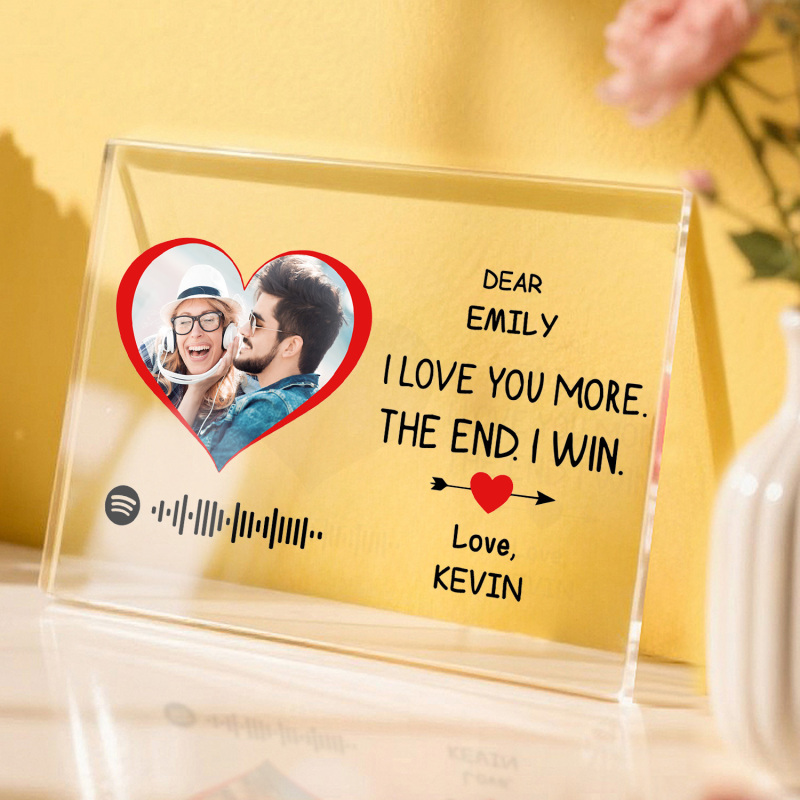 I Love You More Custom Photo Plaque Acrylic Spotify Song Decor Anniversary Gift For Couples