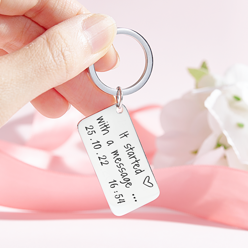 Custom Engraved Keychain It Started With A MESSAGE Personalised Wedding Anniversary Gift for Couples