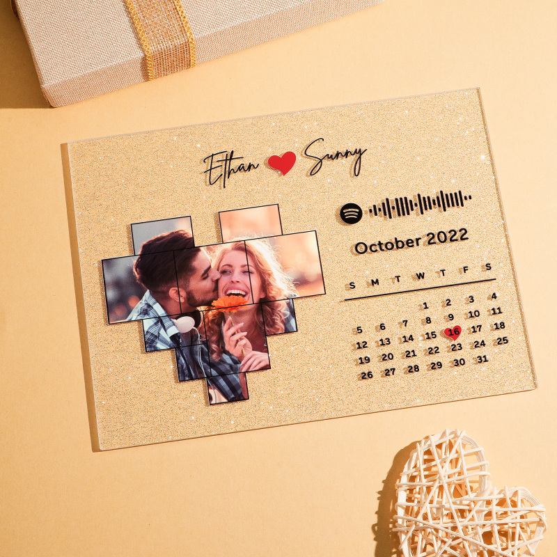 Personalied Photo Calendar Glitter Acrylic Plaque Spotify Song Decor Anniversary Gift