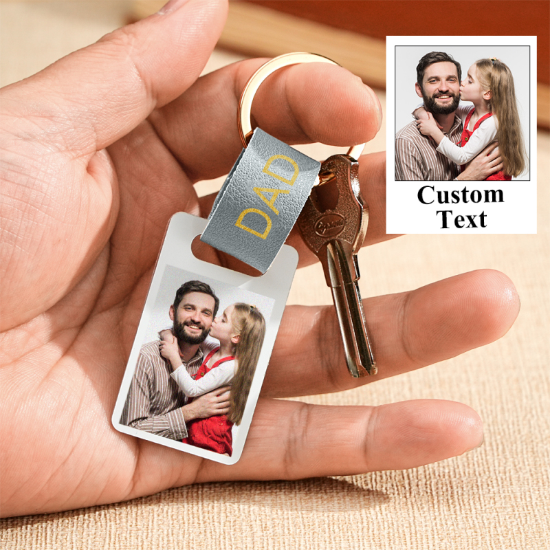 Personalised Dad Photo Keyring Custom Leather Photograph Keychain Father's Day Gift For Him