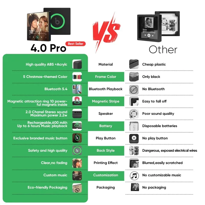 New 4.0 Upgrade Custom Music Fridge Magnet Colorful Frame Album Fridge Magnet Can Play Songs Gift for Couple Can Upload Your MusicNew 4.0 Upgrade -
