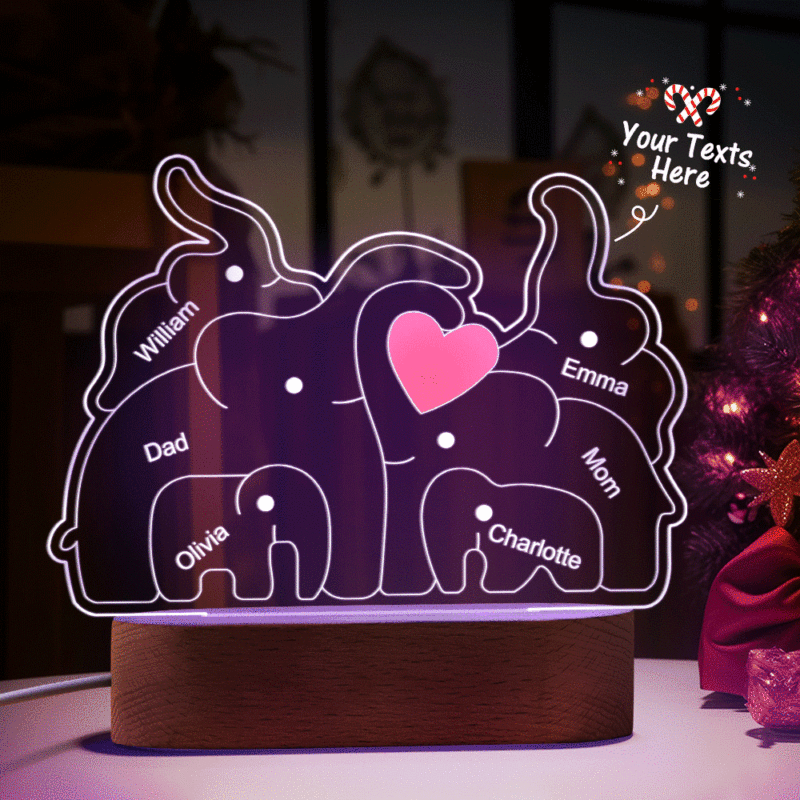 Personalized Names Elephant Family Acrylic Lamp Custom Night Light Best Christmas Gift