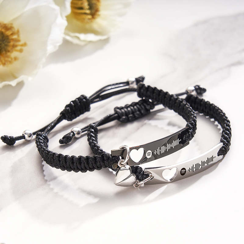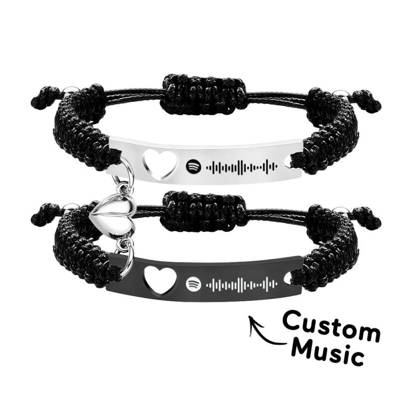 Personalized Stainless Steel Braided Rope Adjustable Hollow Heart Couples Matching Bracelets